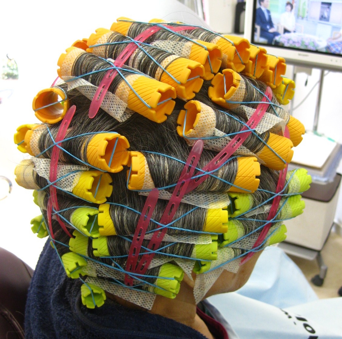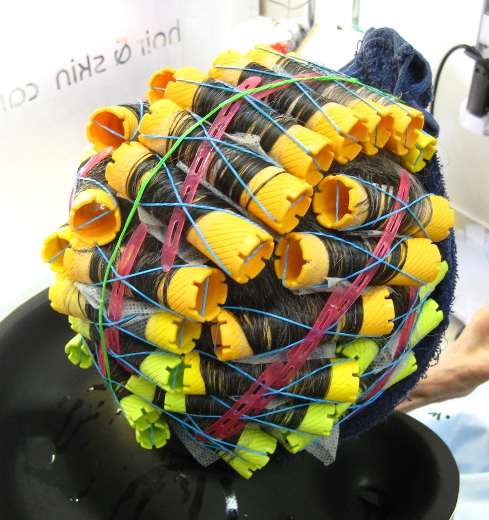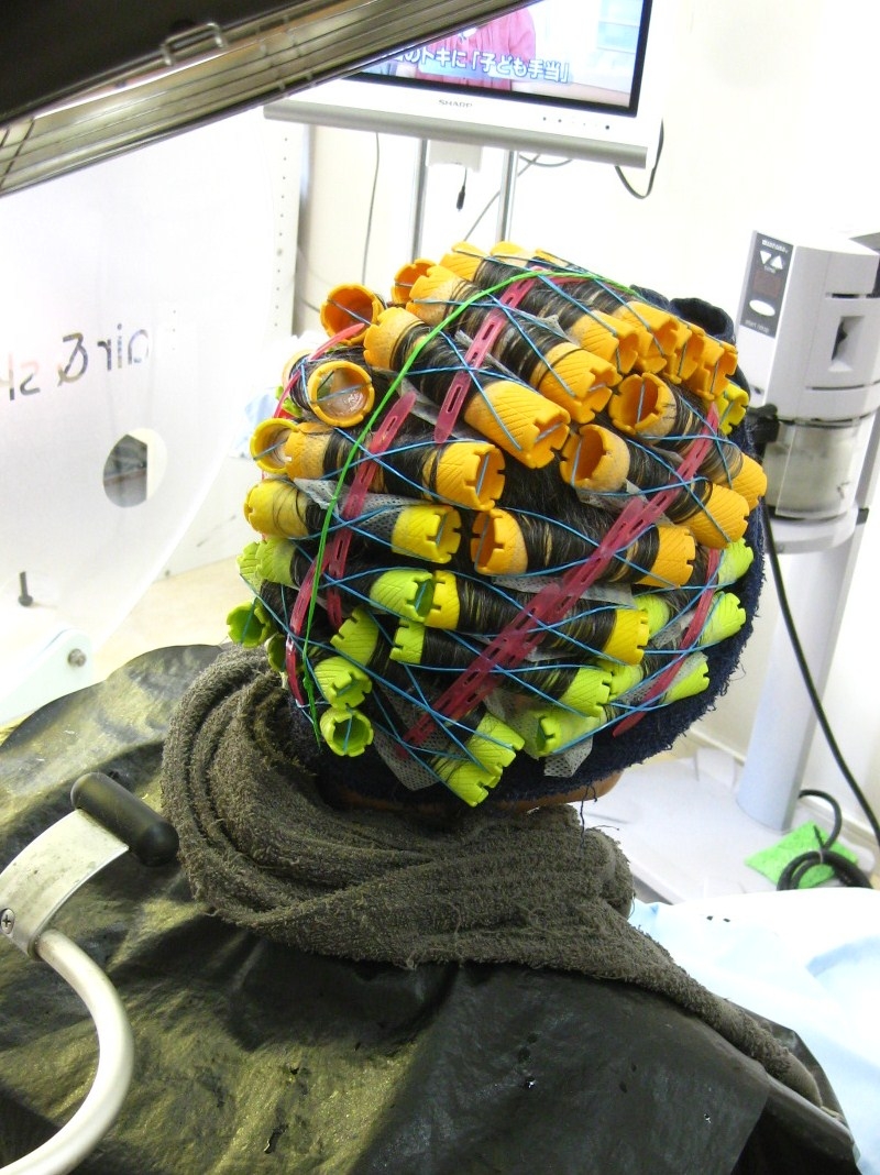 では、このM子先生の髪に”クリープ・パーマ”をかけてみます。